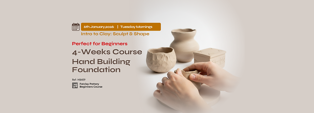 Transform raw clay into beautiful, unique forms with just your hands and simple tools. Learn the core techniques of hand-building in a supportive environment. Develop a fundamental understanding of clay's properties and basic shaping techniques. Transform raw clay into beautiful, unique art pieces that reflect your personal vision. All materials and initial firing are included! ✅Skill Level Achieved This course is designed for Beginners (or Foundation Level). You will progress from zero experience to a competent basic level in hand-building. You'll gain the confidence and essential skills to continue practicing independently or move on to intermediate classes. ►Learning Outcomes (What you'll learn) By the end of the 4 weeks, you will be able to: ✅ Master Foundational Techniques: Confidently execute the three core hand-building methods: Pinching, Coiling, and Slab Construction. ✅ Prepare and Handle Clay: Learn the essential skill of wedging to ensure your clay is ready for construction. ✅ Create Finished Forms: Design and craft 3-5 unique, bisque-fired pieces, such as a pinch pot, a coil vessel, and a slab plate or box. ✅ Understand the Process: Gain knowledge of the complete pottery journey, from wet clay to collection of your finished work. ►Included in the Cost • All materials (clay, tools). • Firing of your finished pieces to bisque ware. • Collection: We'll contact you when your pieces are ready. You have 4 weeks from that notification to collect your work. ►Important Details • Minimum Age: 16+ • Running Requirement: The course will run with a minimum of 2 bookings. • Nails: Please keep your nails short for this hands-on workshop. ►Payment & Missed Sessions • Payment Plans: Available for advanced bookings. Please contact us to arrange. • Missed Sessions: Can be rebooked separately for a £40 fee per session, subject to availability in other classes. We will always do our best to help you catch up. ►Cancellations & Deposits • Individual Bookings: All sessions and courses are non-refundable and non-transferable once booked. • Group Bookings (5+ people): Require a 50% non-refundable/non-transferable deposit at the time of booking. The remaining balance is due one week prior to the session. Full payment is required for group bookings made within 7 days.